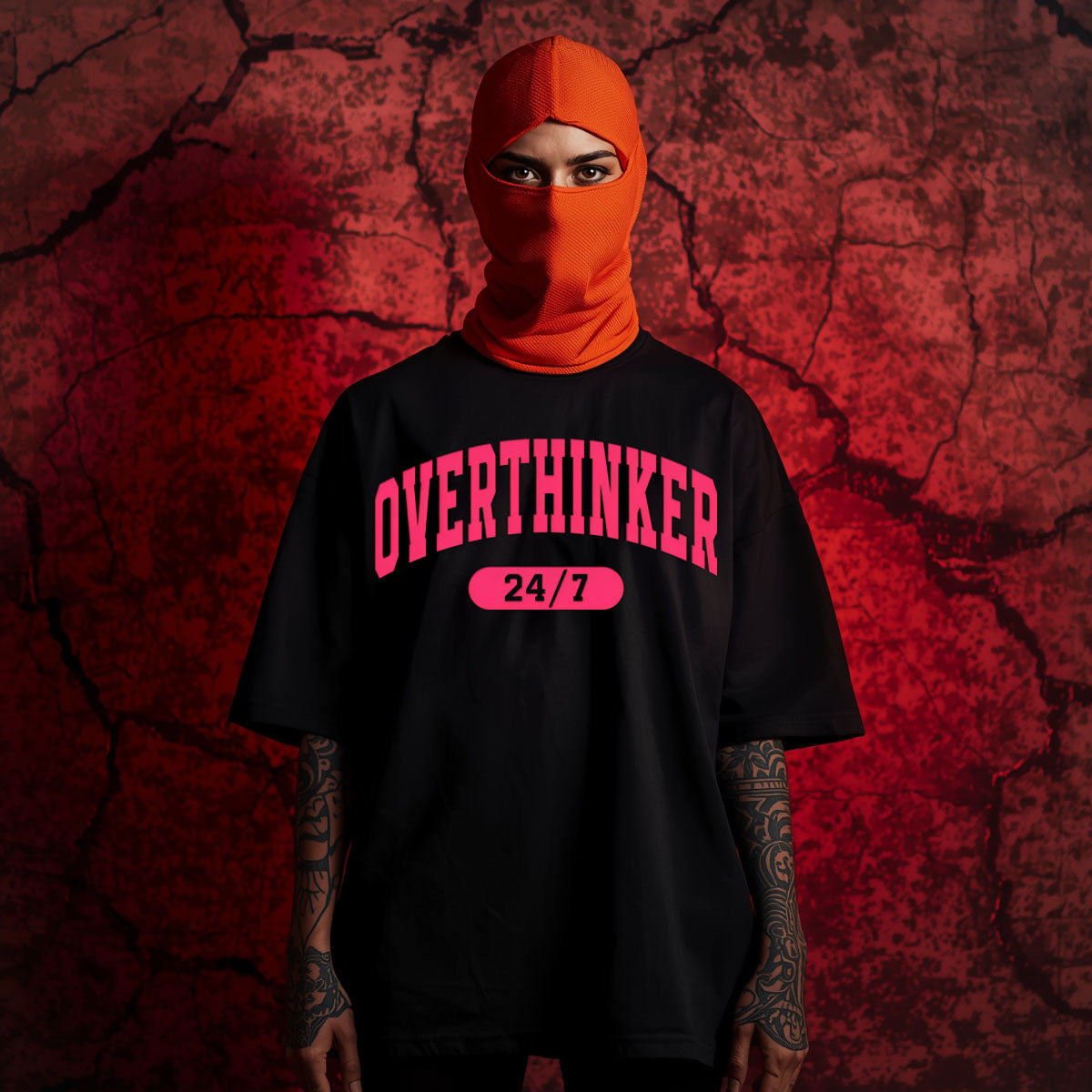 An oversized black shirt embodying the restless mind—caught in an endless loop of mental turmoil. Transforming inner battles into a statement of identity.